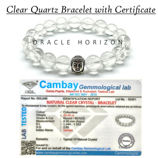 Clear Quartz Crystal Bracelet | Lab Certified | Amplifies Energy, Enhances Clarity and focus - Unisex, 8 mm beads Bracelet