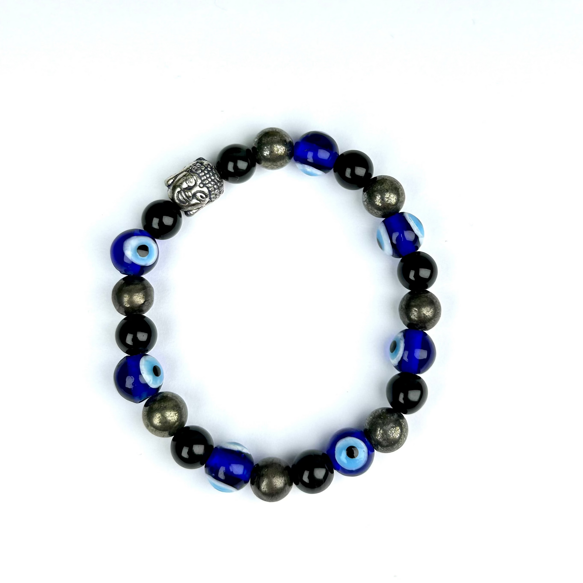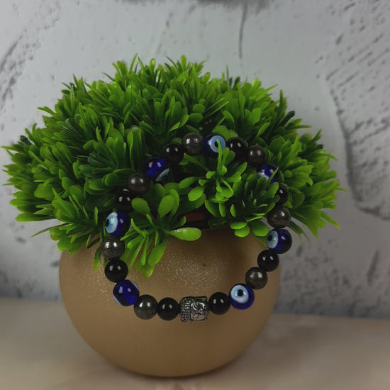 Wealth Shield Crystal Bracelet | Lab Certified | Pyrite and Obsidian | For Financial Gains, Protection and Abundance - Unisex, 8 mm beads Bracelet